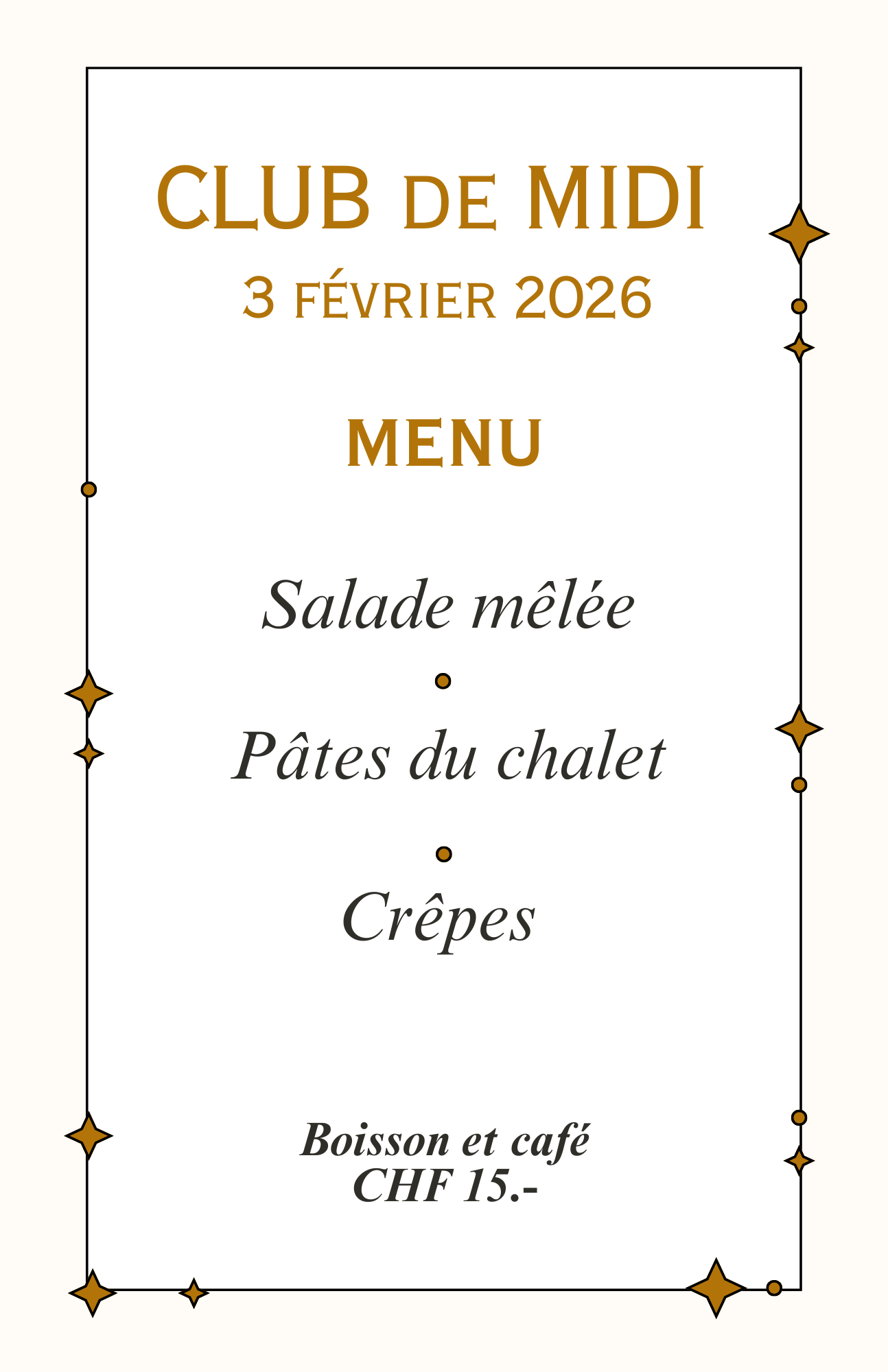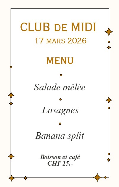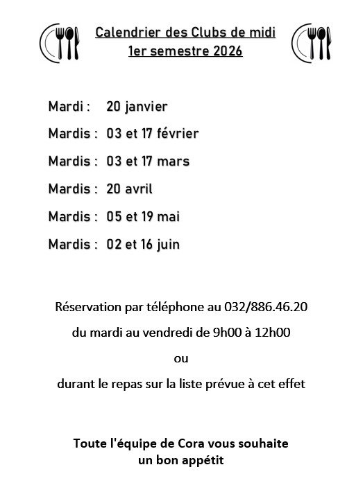 Inscriptions jusqu’au vendredi avant le Club de Midi par téléphone 032 886 46 20